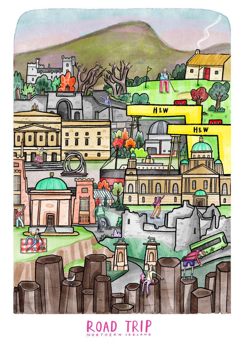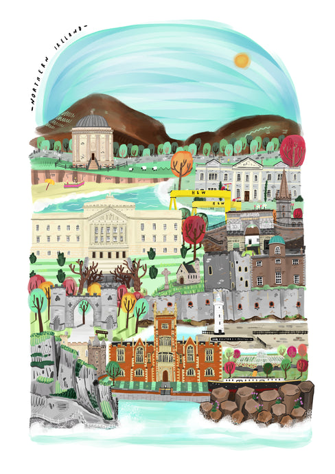 Fancy a road trip around Northern Ireland without leaving your armchair? Then this is the print for you! Featuring Northern Ireland's finest landmarks from across the province, this is the perfect gift to light up your walls!